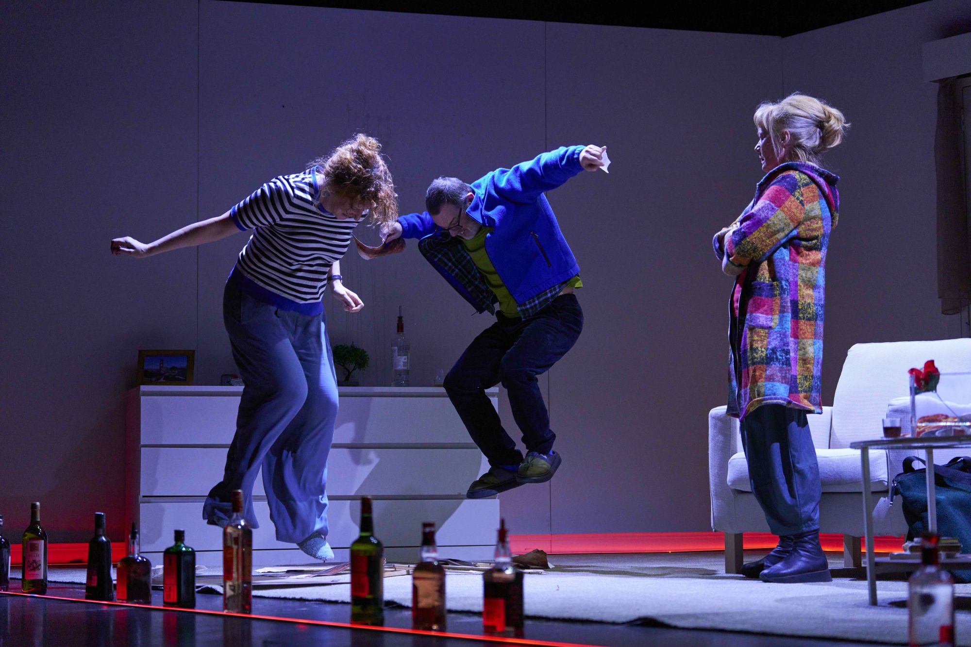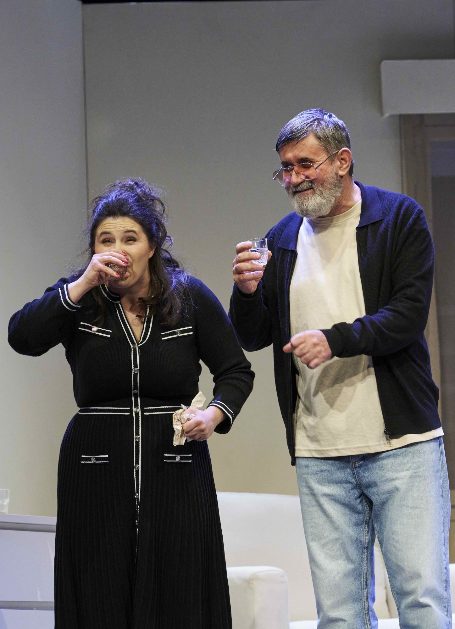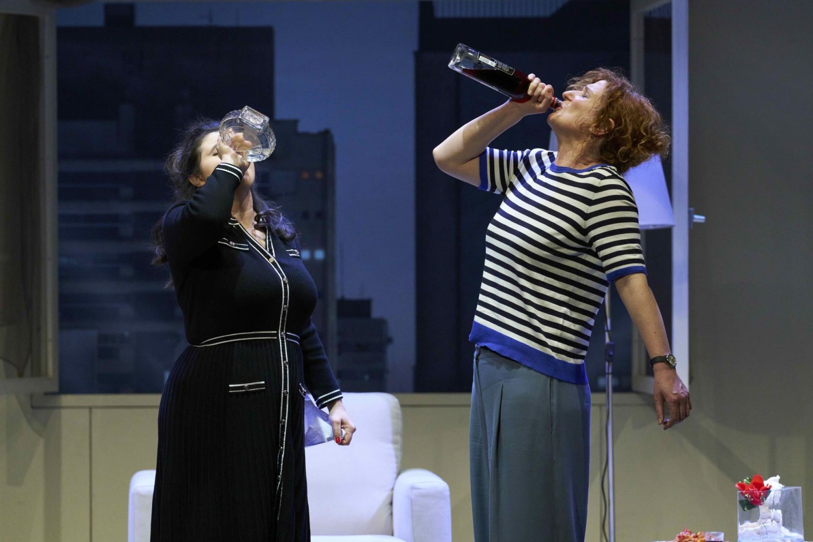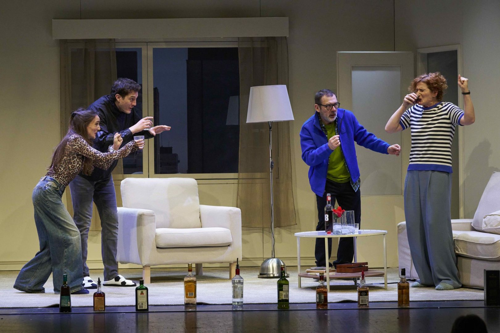 Kako večer odmiče, Marina pod izlikom pijanstva razotkriva godine potisnutih misli, sitnih laži i kompromisa kojima je održavala obiteljski i društveni mir. Iskrenost ruši privid skladnih odnosa, otvara političke, generacijske i intimne razlike te ogoljuje mehanizme pristojnosti. Posebno bolan odnos s strogom majkom pokazuje kako se obrasci kontrole i neizgovorenih zamjeranja prenose s generacije na generaciju.