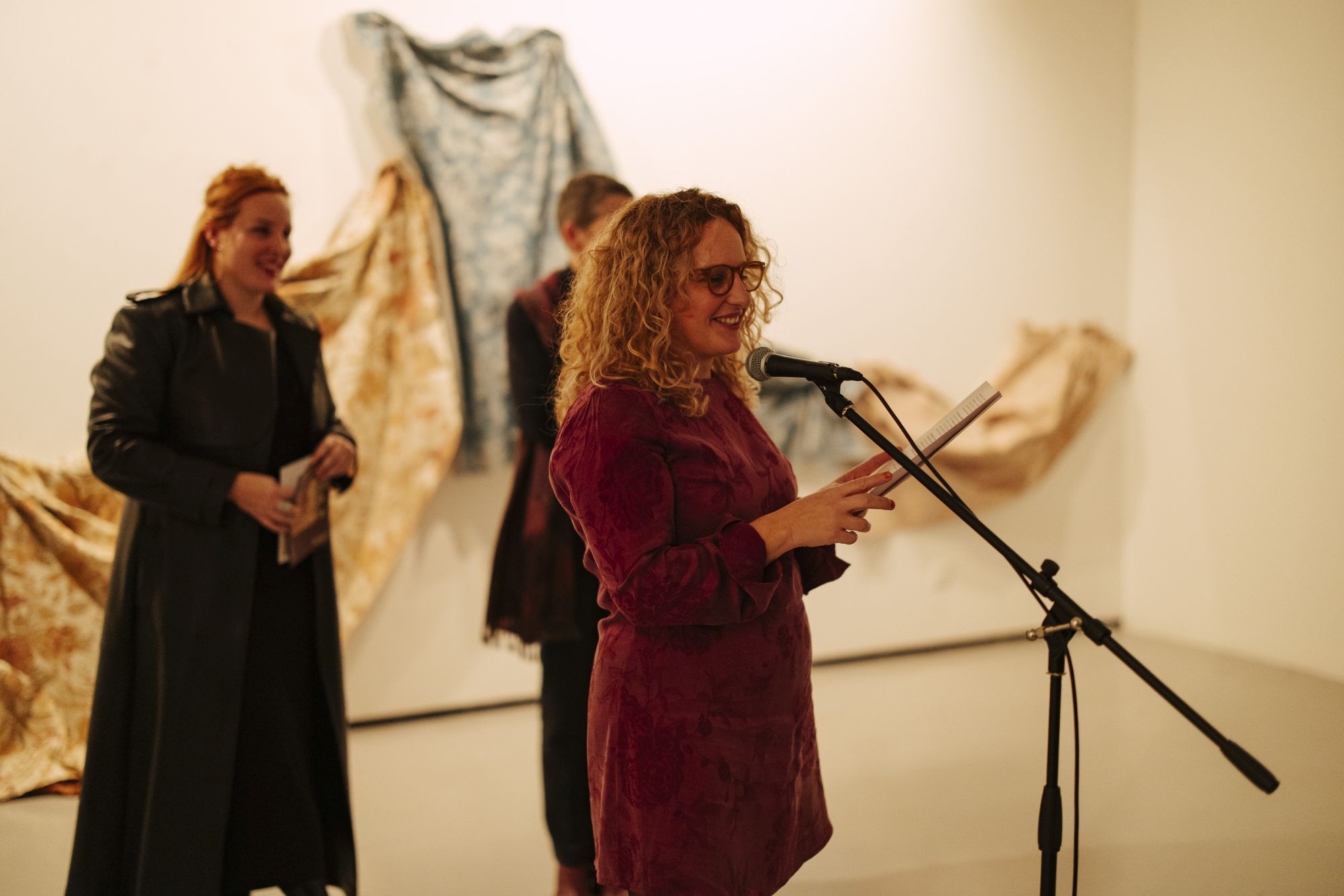 Kroz prostorne instalacije, batik tkanine, prirodne pigmente, crteže i pronađene predmete, autorica gradi vlastitu verziju šume – koja nije odredište, već proces – put prema dubljoj, tišoj, unutarnjoj istini.